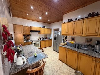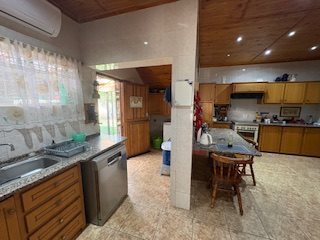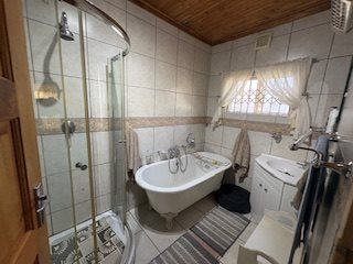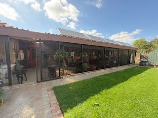 Outbuildings and improvements: 3 garages with wooden sliding doors; Three vehicle carport, Large workshop, domestic workers room, outside toilet, Borehole, Fully installed garden irrigation system; Solar system with 2x 8.5kw Deye inverters, 6x 5.12kwh Shoto battery’s and 33 Solar panels, Camera system with 16 Cameras, the property is fully enclosed with electric fence.