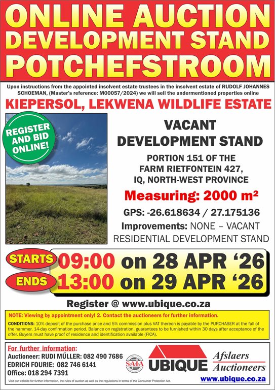 PORTION 151 of the farm RIETFONTEIN 427, IQ, NORTH-WEST PROVINCE: